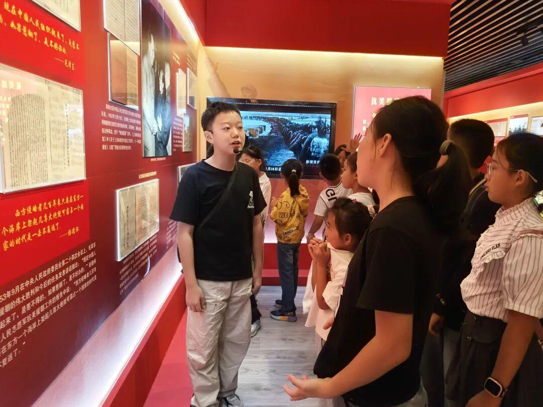 在“‘百年恰是风华正茂’档案文献展”展厅,一位小讲解员用稚嫩的声音,讲述了档案文献背后革命先辈的奋斗故事。他真挚的情感、清晰的表达,让一段段尘封的历史焕发出新的生命力。小记者们静静聆听,深刻体会到先辈们为革命事业作出的巨大牺牲与不懈努力,红色的种子在心中悄然扎根。