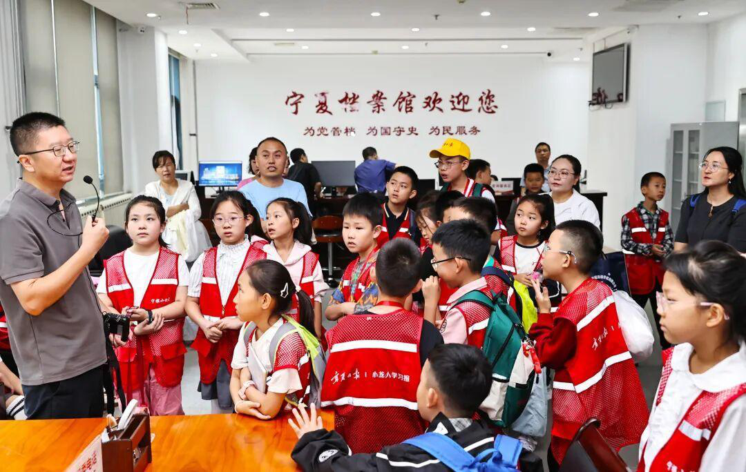最让小记者们感到兴奋的是走进平常难得开放的宁夏档案馆特藏档案库。推开特藏档案库的大门,时光仿佛慢下了脚步:泛黄的老照片、带着褶皱的档案文献、略显古朴的老物件……它们整齐地陈列着,宛如一幅立体的“宁夏记忆画卷”。“同学们,你们知道景岳小学吗?”提及这所学校,工作人员娓娓道来:“那里有一座三烈士纪念碑……”聆听着烈士的感人事迹,小记者们心中充满了崇敬与钦佩之情。